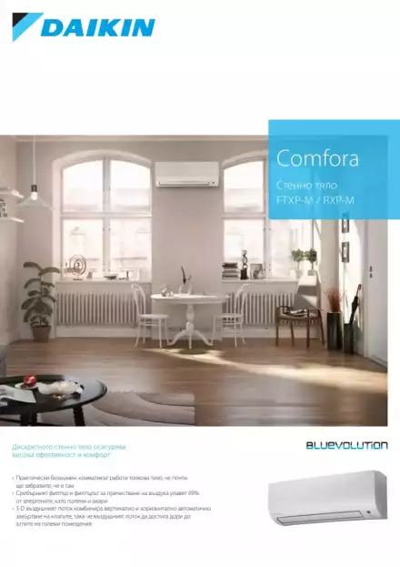 Климатик за съвременния начин на живот, с енергоспестяващ режим и сребърeн филтър , за по-добро качество на въздуха във Вашия дом и за комфорт на въздушния поток. Практически безшумен и с допълнителния филтър от титаниев апатит, Comfora е идеален за спални помещения.